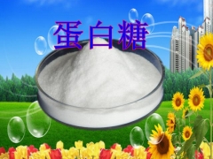 蛋白糖主要用途是作为食品添加剂,添加在食品中,如:饼干,糕点等,增加其甜度及口感。 蛋白糖在食品行业的甜味剂行业,并不是真正的含蛋白质的糖。因为在甜味剂行业国内商家所称蛋白糖主要成分是阿斯巴甜(天门冬酰苯丙氨酸甲酯)[1]等复配而成,阿斯巴甜在人体内分解时产生天门冬氨酸和苯丙氨酸。产生的氨基酸并不代表是蛋白质,同样也没有蛋白质的特性和营养价值。可以全部或部分代替蔗糖。经济实惠,既能提高产品质量,又能减低成本。甜味清甜可口,甜润不腻,适用制作汽水、果汁、可乐、酒类、罐头、八宝粥、面包糕点、饼干、雪糕、冰淇淋、蜜饯、豆奶、乳酸奶等食品饮料,以及各种低糖保健食品。
